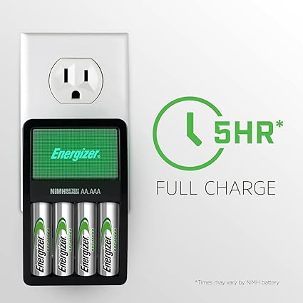 • Charges 2 or 4 AA or AAA NiMH rechargeable batteries at once (4 AA batteries included)