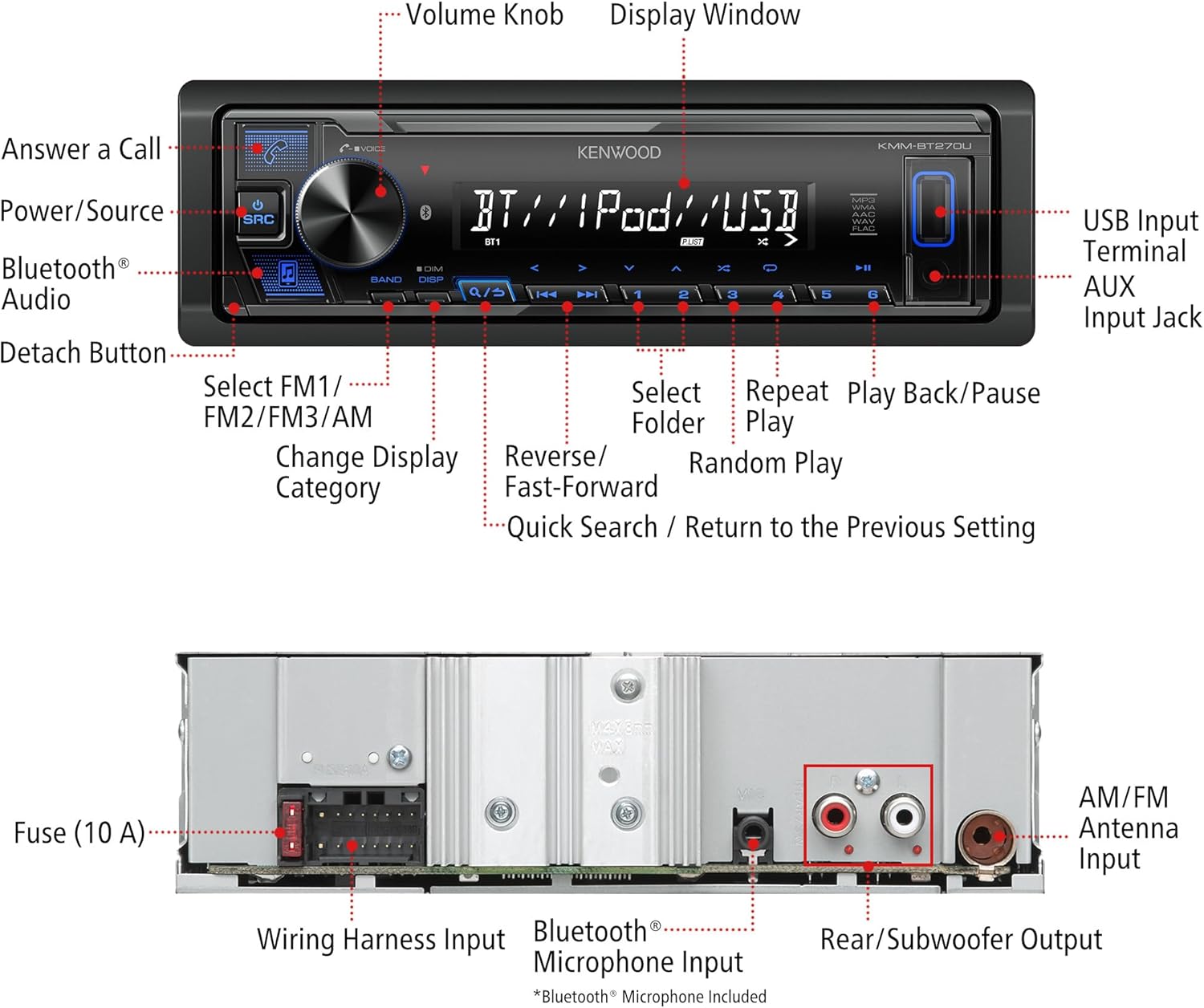 • Enhanced Connectivity: Stay connected on the go with the KENWOOD Car Stereo KMM-BT270U, featuring Bluetooth technology for seamless wireless audio streaming and hands-free calling from your smartphone