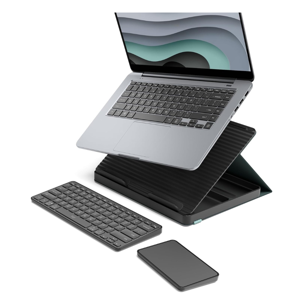 • For a Wide Range of Laptops: The laptop holder supports most laptops from 10” to 17”(2); plus, each device connects to multiple OS (Windows, macOS, iPadOS, ChromeOS) via Bluetooth Low Energy