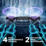 • 【𝐄𝐩𝐢𝐜 𝐂𝐢𝐧𝐞𝐦𝐚 𝐀𝐮𝐝𝐢𝐨】: Powered by 4 high-performance drivers, 80W powerful sound output, it provide richer details, like soft whisper or subtle croon, whether deep thunder or sonorous roar, turn flat audioto vivid, adding weight to music, making the virtual game experience immersive.