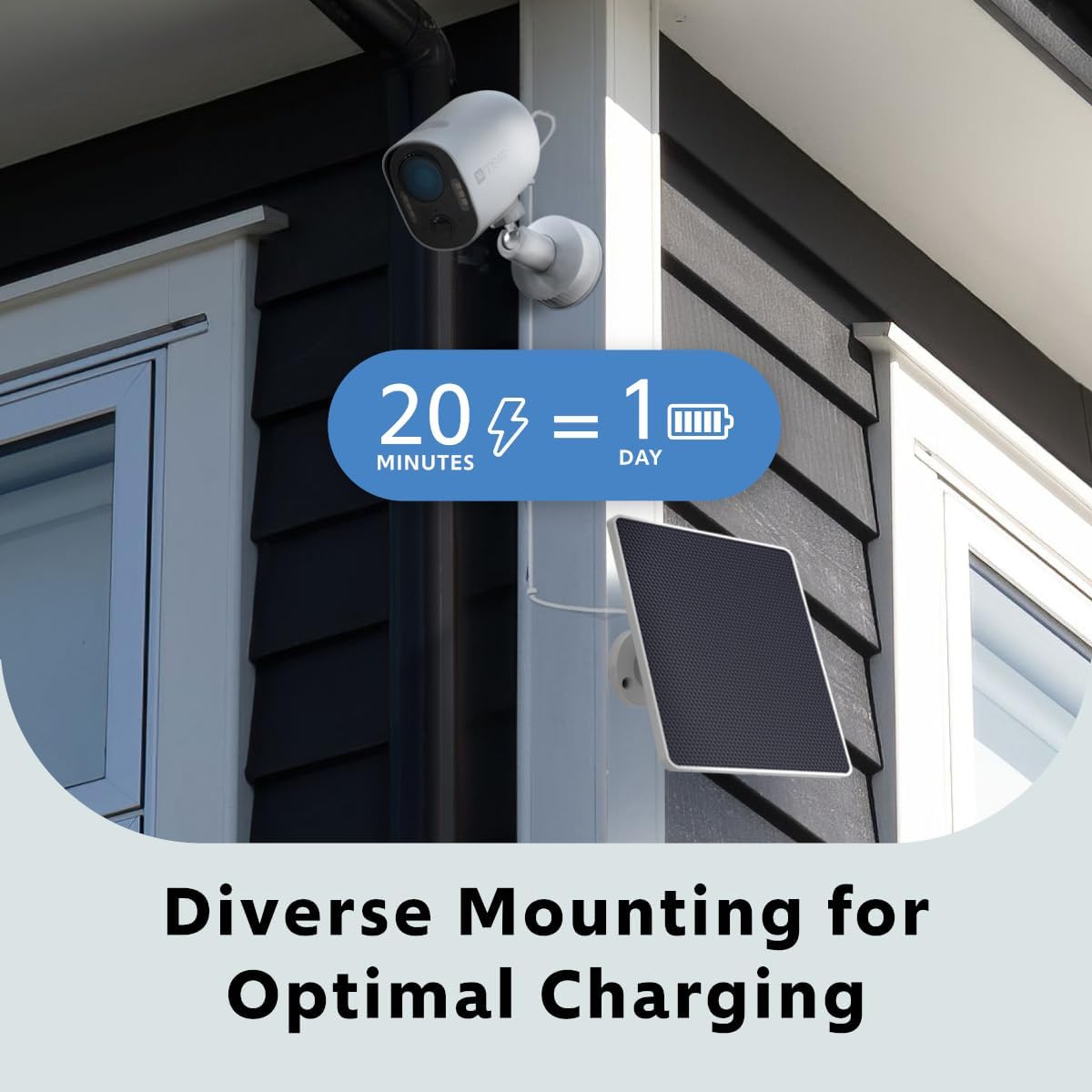 • Solar-Powered for Continuous Charging: Keep your camera running 24/7 with just 20 minutes of daily solar charging, ensuring uninterrupted power in an eco-friendly, energy-efficient way.